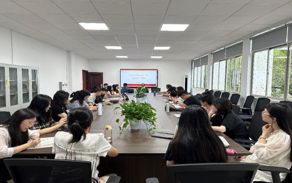 9月12日下午,中文系在金盆岭校区9教318会议室召开新学期工作布置会议。副院长周云鹏、系主任郑劭荣及中文系全体教师参加了会议。会议由郑劭荣主持。