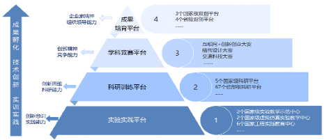 3、建立了“12345”培养模式,将创新创业教育贯穿人才培养全过程。“12345”培养模式,即1个中心:以学生发展为中心;2项目标:以创促教、以创促学;3条路径:创新知识普及、实践环节锤炼、学科竞赛提升;4种支撑:一流专业支撑、组织制度支撑、高水平平台支撑、优质资源支撑;5大能力:求知问学的学习能力、踏实肯干的实践能力、探索求知的创新能力、合作共赢的竞争能力、敢为人先的创业能力。学校制定了《关于进一步推进创新创业教育改革的实施办法》等系列制度文件,强化顶层设计。学校依托43个国家一流本科专业建设点、7个教育部“卓越工程师培养计划”专业等,以“专创融合”促进创新人才培养。学校成立了创新创业教育中心、创新创业教育学院、大学生创新创业园、创新创业指导中心18个(学院);构建了“双创基础+双创通识+赛教结合”的课程体系,编写专创融合教材73部、创新创业案例集12本。搭建了体系完备的实践能力培养平台,目前拥有2个国家级实验教学示范中心、2个国家级虚拟仿真实验教学中心、6个国家工程实践教育中心、1个国家大学生校外实践教育基地、40个省级创新创业教育平台,每年完成实践155万人学时。专兼融合的双创导师队伍近千人,其中专职教师40人,校内兼职教师560人,外聘双创导师382人。