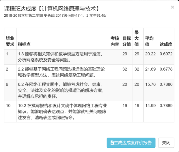 (3)系统协助专业对学生能力达成情况进行跟踪,形成性评价学生学习效果,以便专业老师及时跟进督促学生学习。