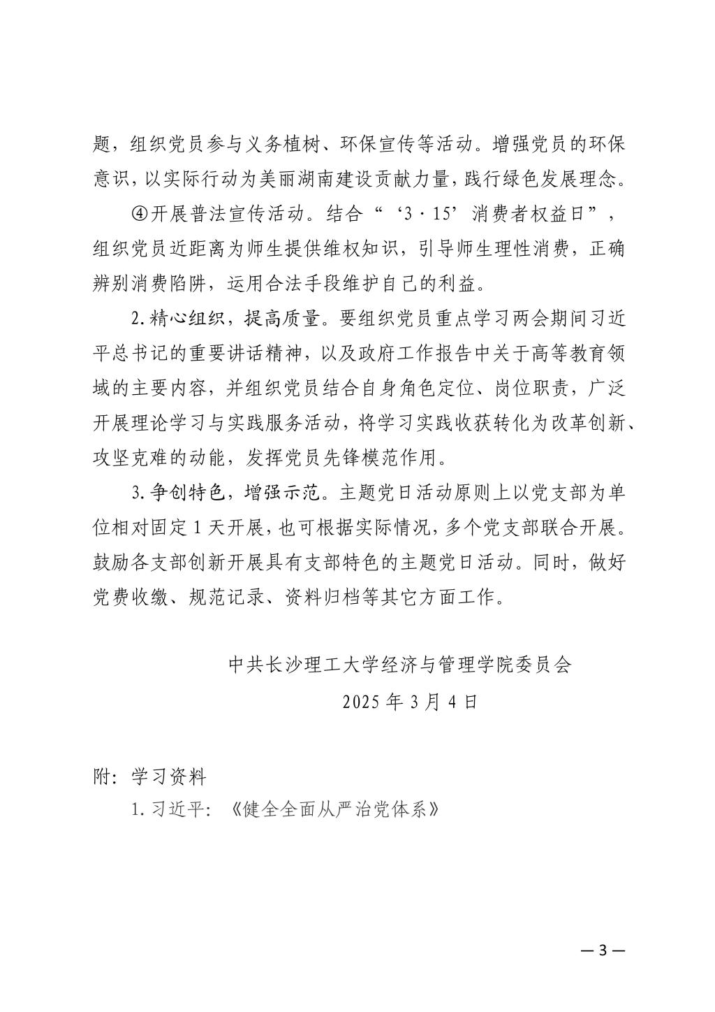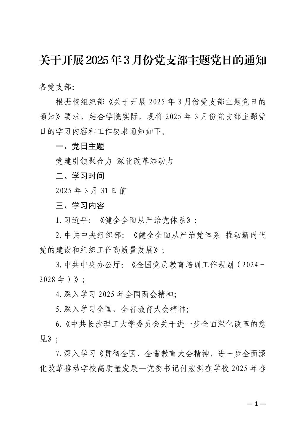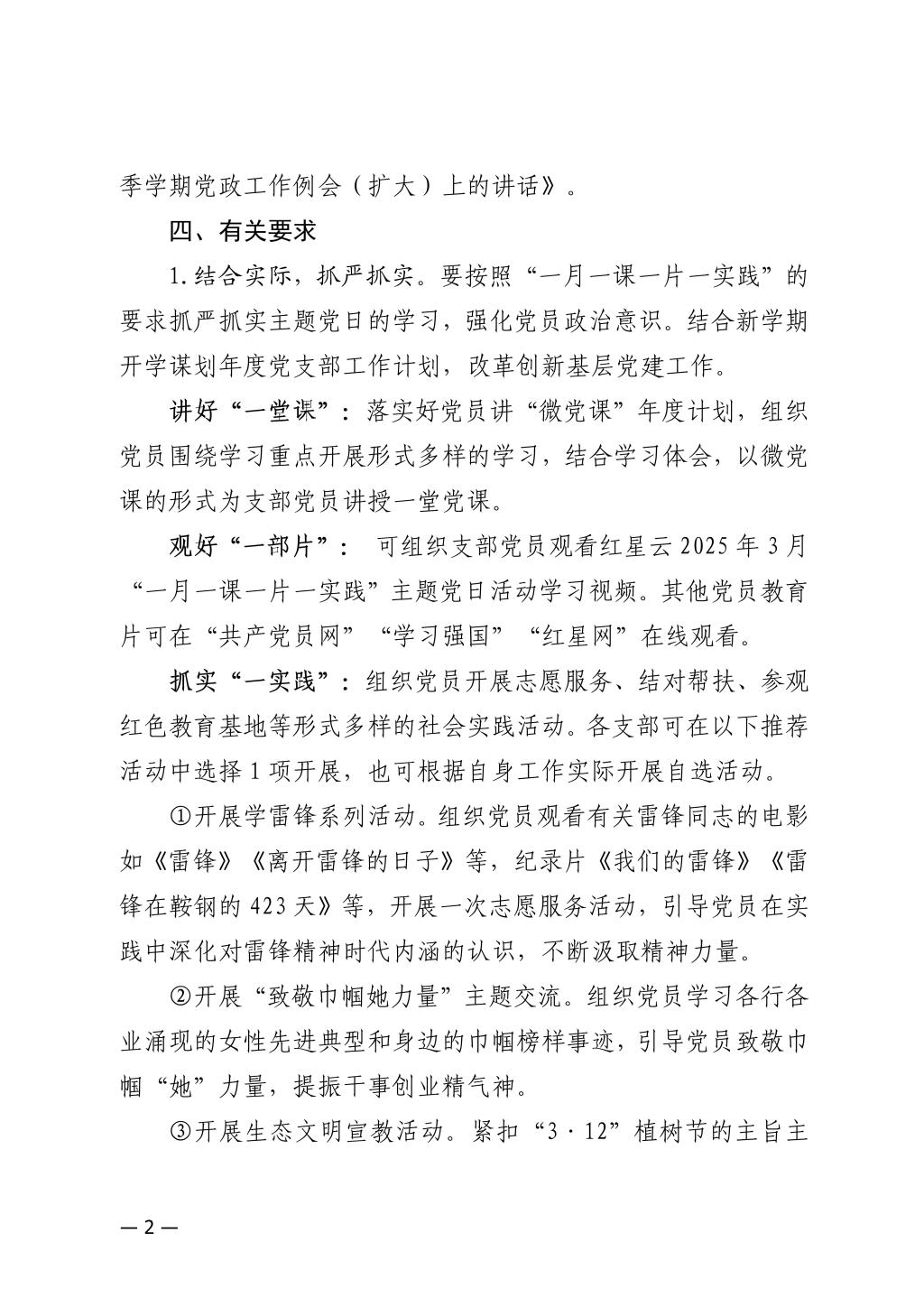 关于开展2025年3月份党支部主题党日的通知