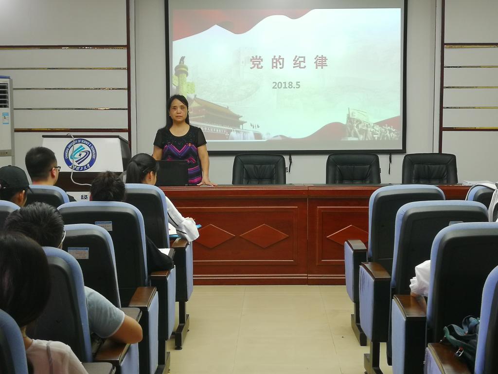 胡秀英处长的课程名为《党的纪律》。胡秀英首先概述了纪律对于党组织的重要性。随后,她详细地阐述了党的纪律的主要内容,结合多年工作经验与经典事例,从政治纪律、组织纪律、廉洁纪律、群众纪律、工作纪律与生活纪律六个方面进行深入说明,同时表示纪律是“党”的题中之义。其次,胡秀英向发展对象介绍了党的纪律处分类型,以及当前党的纪律建设、党在反腐倡廉上清醒与坚定。课上,除了对党的纪律进行理论上的解释之外,她还结合工作与新闻中的实例,向发展对象更深刻地传达了党的纪律的重要性,并希望大家入党后永远不忘学习党纪、遵守党纪、维护党纪,成为中华民族伟大复兴事业的中坚力量!