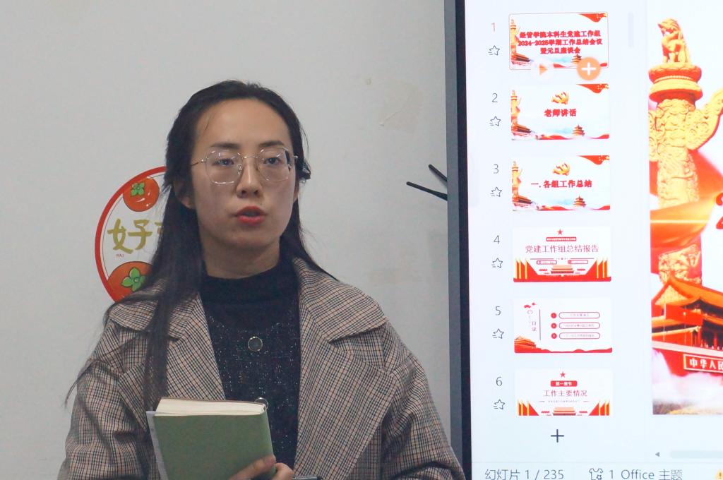 最后,叶鑫结合自身的工作经历进行分享。她强调各组之间应加强联系,确保沟通渠道畅通有效,也希望作为学生干部的大家能以更高的标准要求自己,提高业务能力,注重工作细节,学会换位思考。面对充满机遇与挑战的新工作环境,她希望大家妥善平衡好学习与工作的关系,扎实推进各项工作,以更加饱满的热情投入党建工作之中。