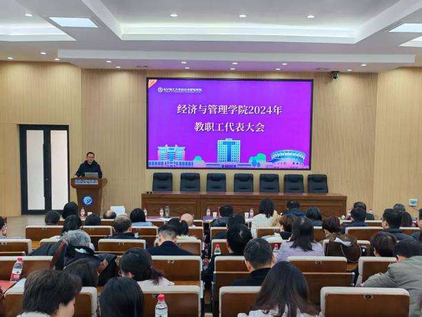 2025年1月17日,经济管理学院2024年度第一次全院教职工代表大会在学院多功能报告厅隆重召开。会议由院党委副书记、院工会主席汪功伟主持,院党委书记马丽、院长彭新宇及各分管副院长出席会议。本次教代会共有70名教职工代表出席,占应到代表总数的90%,充分体现了全院教职工对学院发展的高度关注与积极参与。