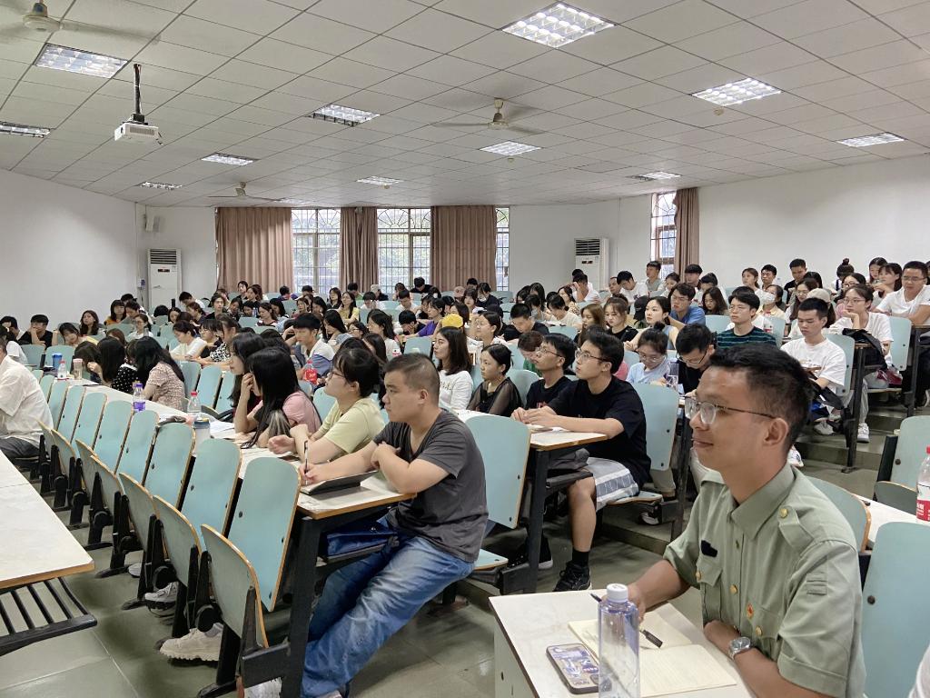 9月12日下午2:30,经济与管理学院2021级研究生在金盆岭校区6教110听党委书记丁丹讲“第一堂党课”,本次党课主题为“中国共产党为什么‘能’”。院关工委陈均杰、研究生辅导员陈莹及全体2021级研究生参加,院党委副书记唐青主持。