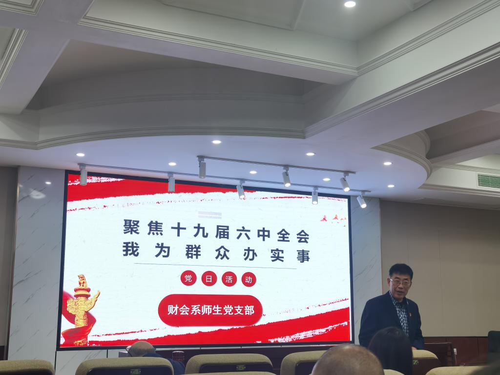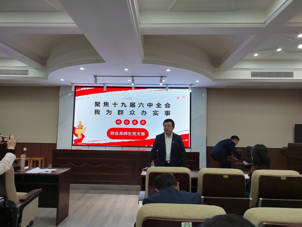 首先,刘天雄带领全体党员回顾了党的十九届六中全会相关要点,并从六个方面为全体师生党员全面且细致地解读党的十九届六中全会《公报》内容。接着,周路路号召广大学生党员与老师们分享学习心得,将全会精神贯彻落实到实际行动中去,在支部全体党员中掀起学习全会精神的新风尚。会计第一学生党支部胡心仪同学分享到:保研后,面对学弟学妹们关于保研、学习、生活的相关问题,她都会认真解答,无私分享自己的保研学习经验,努力做到为群众办实事。沈子豪同学则结合近日校内电动车管理措施,分享他作为一个电动车摆放引导员工作过程中是如何落实办实事精神的。