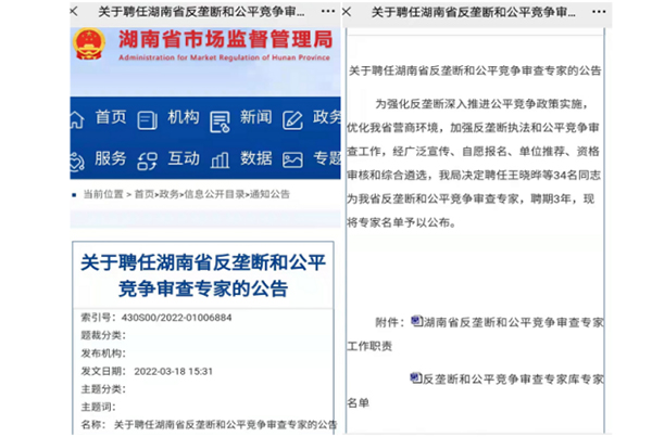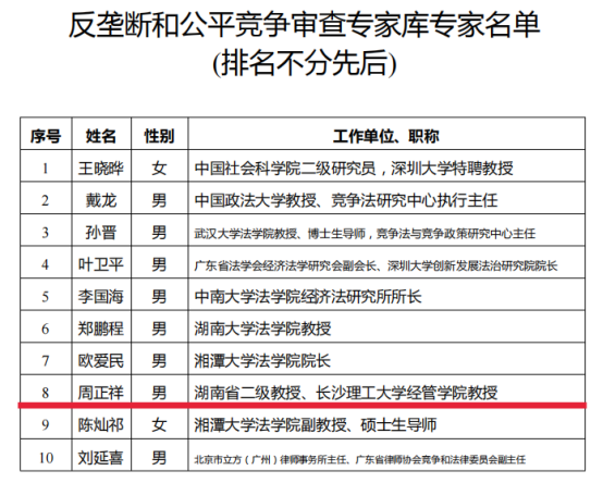 强化反垄断,深入推进公平竞争政策实施,优化湖南省营商环境,加强反垄断执法和公平竞争审查工作,2022年3月18日经湖南省市场监督管理局公开遴选,必赢官网周正祥教授被聘为湖南省反垄断和公平竞争审查专家库专家。