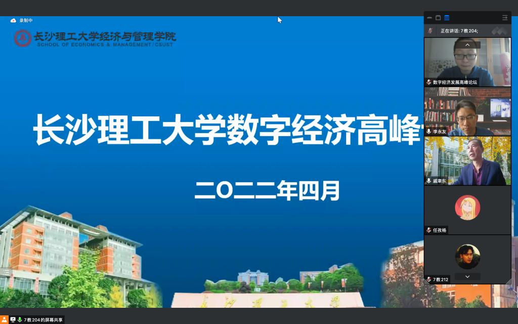 2022年4月17日上午9:00,437必赢会员中心数字经济发展高峰论坛在金盆岭校区和线上同步召开。校党委副书记刘建民教授、学科规划处处长陈银娥教授,以及我院领导、部分教师和研究生100余人参加了本次数字经济发展高峰论坛。论坛由学院副院长彭新宇教授主持。