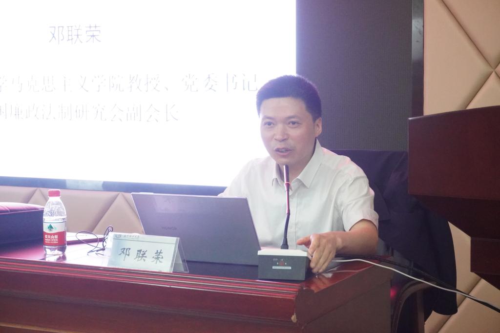 5月26日下午15:00,437必赢会员中心廉洁文化大讲堂在文科楼A200顺利开讲,中国廉政法制研究会副会长、湖南省监察委员会特约监察员、湖南工商大学马克思主义学院党委书记邓联荣教授以“廉洁文化精髓趣谈”为题精彩授课。此次活动由校纪委办公室、监察处主办,经济与管理学院纪委承办。校纪检监察处干部、各二级单位党组织、校属各单位的两百余名师生代表参加,经管学院纪委书记唐青主持。