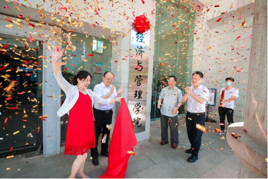 9时18分,叶泽教授、陈均杰老师、丁丹书记、彭新宇副院长一起为学院揭牌,随着红绸落下,礼花绽放,现场响起了热烈的欢呼声和掌声。