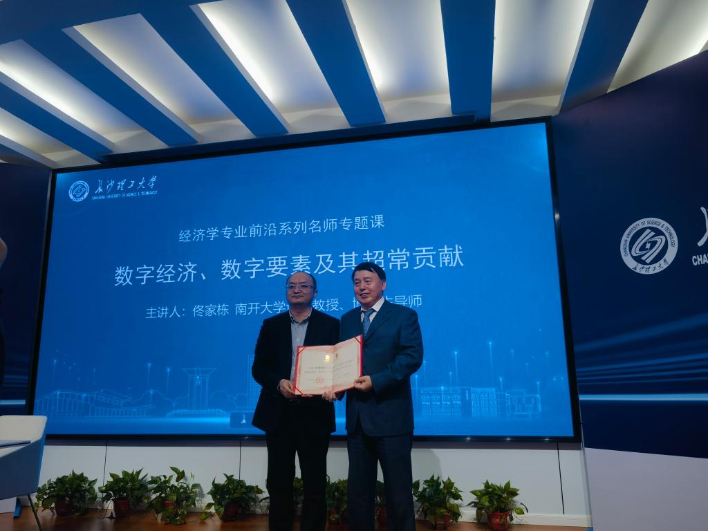 报告会开始前,彭新宇为佟家栋教授颁发了特聘教授聘书。