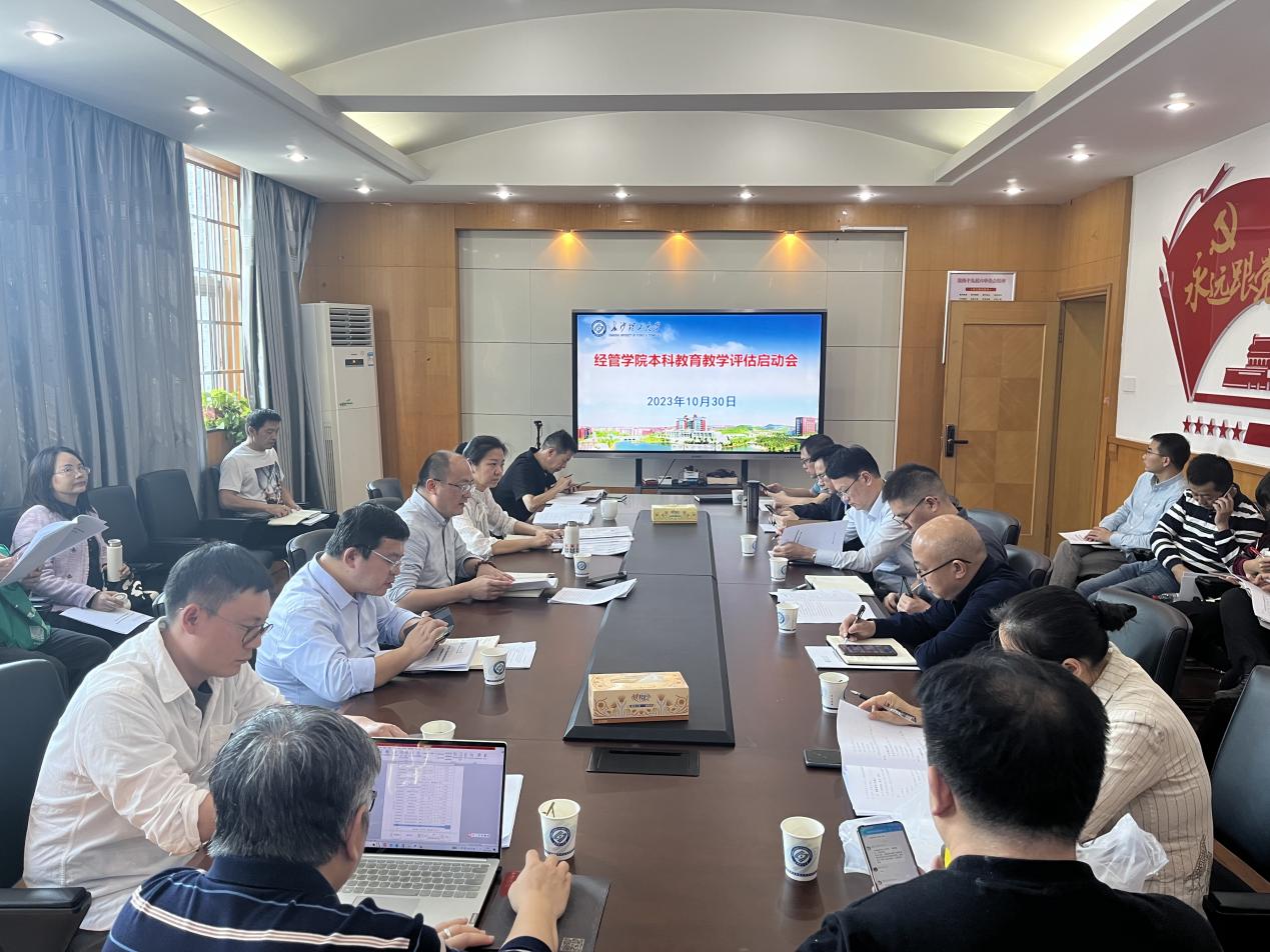 10月30日上午,必赢官网本科教育教学审核评估线上评估正式启动。为有效推动学院审核评估工作和教育教学的顺利开展,实现"以评促建、以评促改、以评促管、以评促强"的评估目标,10月30日下午,经管学院在金盆岭校区经管大楼307会议室召开本科教育教学审核评估启动会。会议由副院长(主持工作)彭新宇主持,学院党政领导班子成员、教工党支部书记、系(室、中心)主任、评估办成员等参加会议。