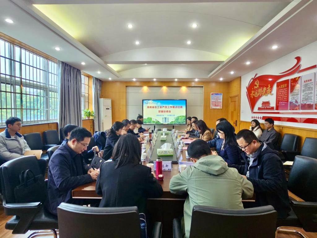 3月31日下午,湖南省总工会产改工作重点任务部署协调会在必赢官网金盆岭校区经管大楼会议室召开。省总工会党组成员、省教育工会主席刘湘凌,省总工会相关部门负责人,校党委副书记、工会主席方琼,校工会、经管学院负责人参加会议,会议由方琼主持。