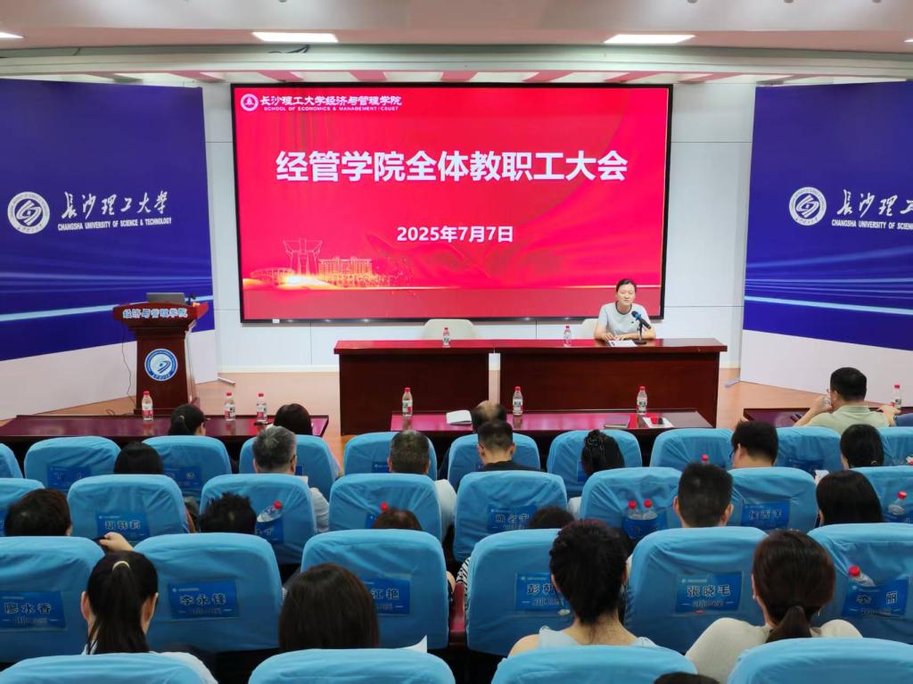 77日下午,经管学院在金盆岭校区12200学术报告厅召开全体教职工大会,回顾上半年学院各项工作进展情况,部署安排暑期阶段各项重点工作。学院党政领导班子成员、全体教职工参加会议。会议由院党委书记马丽主持。