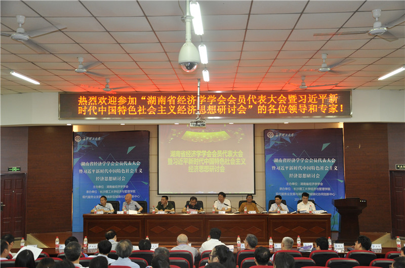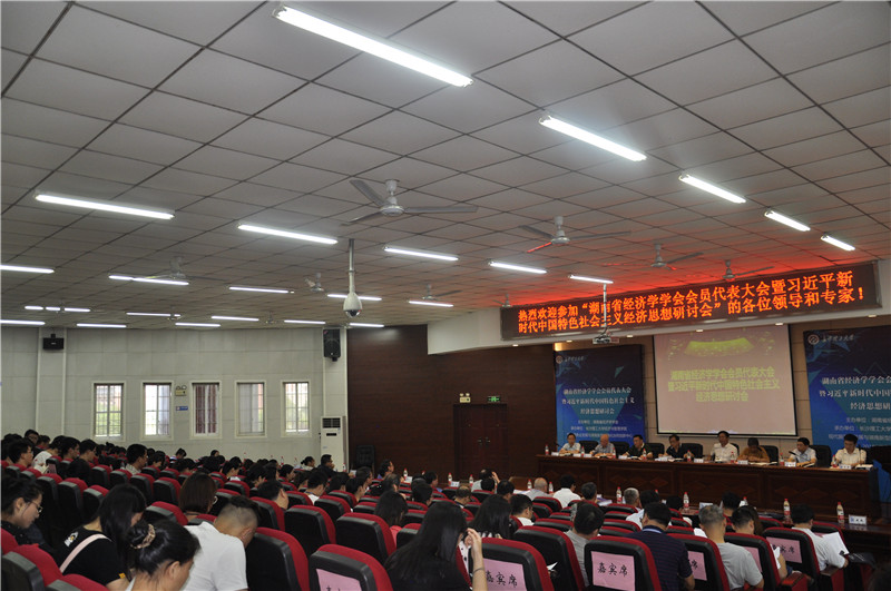 7月15日上午,由湖南省经济学学会主办,437必赢会员中心经济与管理学院、现代服务业发展与湖南新型城镇化2011协同创新中心联合承办的“湖南省经济学学会会员代表大会暨习近平新时代中国特色社会主义经济思想研讨会”在437必赢会员中心文科楼A200报告厅召开。来自省民政厅、省社科联、省社科院以及多所高校的领导、专家集聚一堂,必赢官网党委书记付宏渊、副校长谈传生参加了会议。会议分为两个阶段,第一个阶段是湖南省经济学会会员代表大会,主题是学会换届选举,由学会副理事长柳思维教授主持;第二个阶段是习近平新时代中国特色社会主义经济思想研讨会,由学会新任理事长王耀中教授主持。