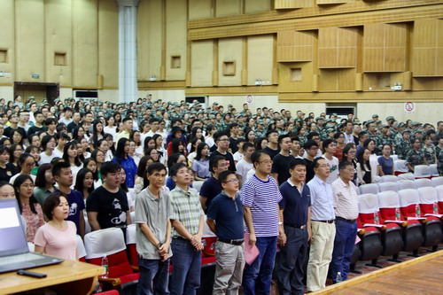 随后,在新生陈鹏远的带领下,近千名新生齐声宣读入学教育宣誓誓词,对自己的将来许下郑重的承诺。