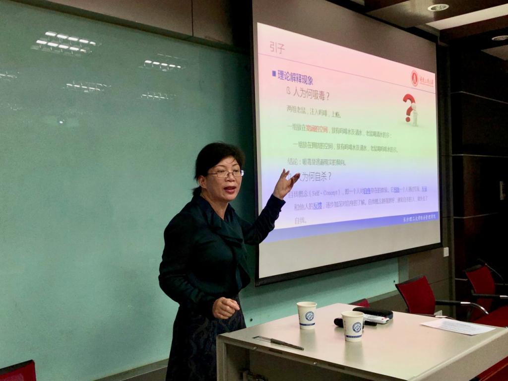 2019年6月18日上午,湖南工商大学刘嫦娥教授应邀来我院进行学术讲座,主题为“从研究设计到论文写作”,讲座在金盆岭校区七教212举行,由黄维教授主持,经管学院部分教师及研究生参加了本次讲座。