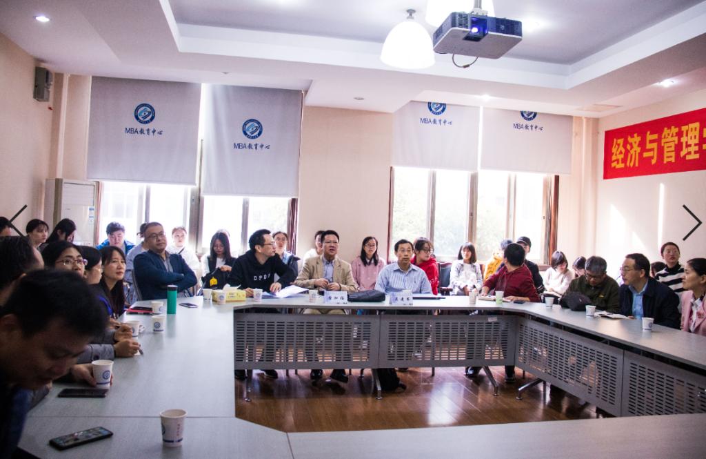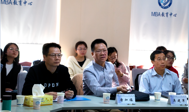 2019年11月10日上午9点,东北财经大学唐加福教授应邀来我院做学术讲座,以“凝炼科学问题的几点体会和初浅认识”为主题,在金盆岭校区七教204开展讲座。本次讲座由张新华副院长主持,经管学院王治副院长、唐文彬等多位老师及部分博士生、硕士生参加了本次讲座。
