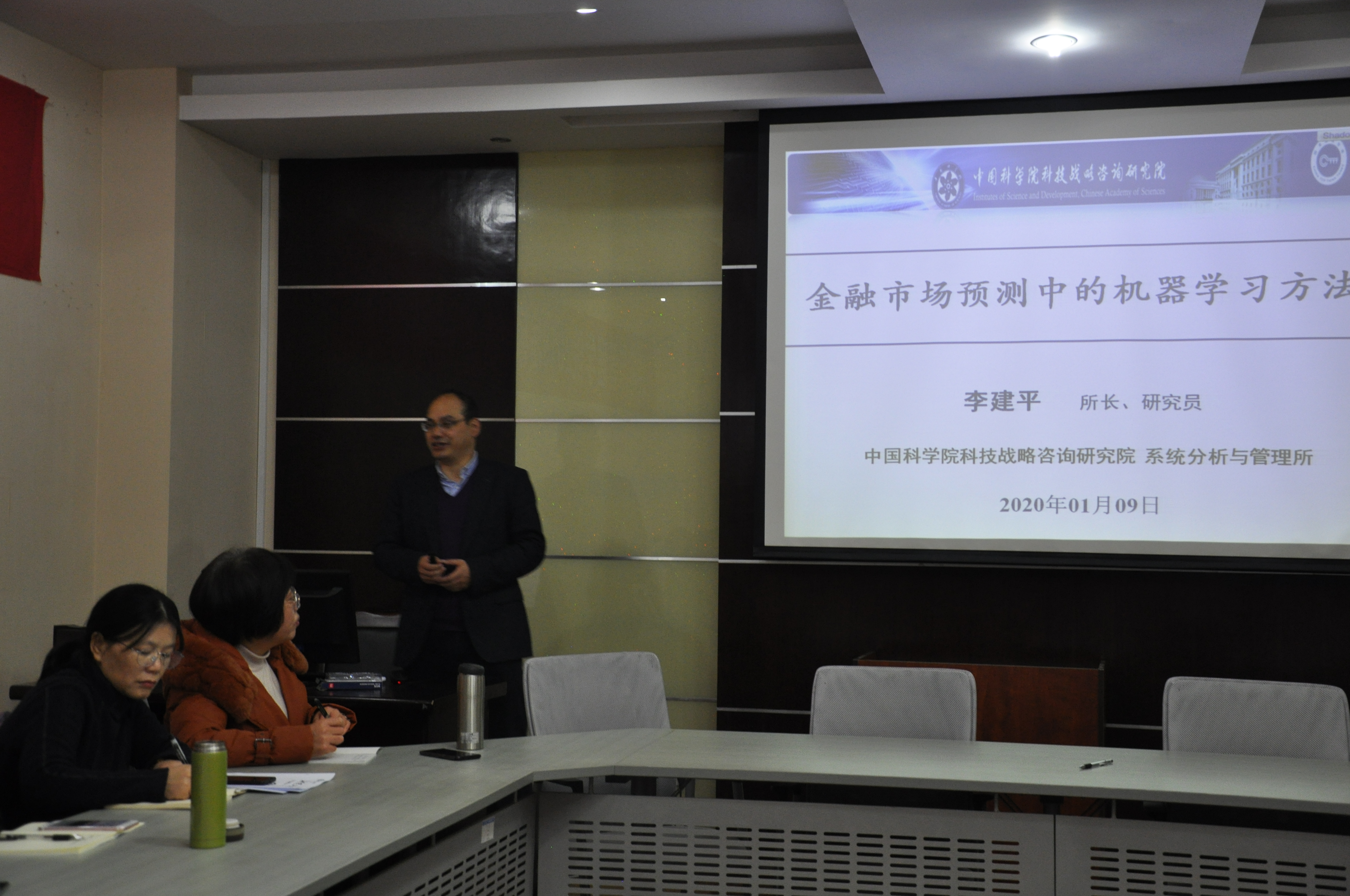 2020年1月9日上午,中国科学院李建平教授应邀来我院做学术讲座,主题为“金融市场预测中的机器学习方法研究”,在金盆岭校区七教204开展讲座。本次讲座由张新华副院长主持,王治副院长及部分老师、硕士及博士生参加了本次讲座。
