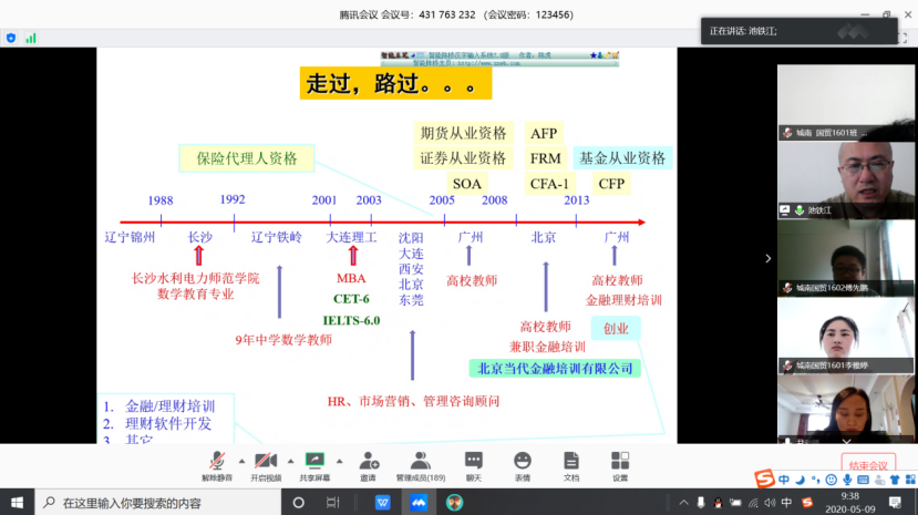 本次讲座由金融系牵头组织、经贸系协办,金融1601班部分班委具体负责线上会议的组织、宣传和线下沟通事宜。全程网络流畅,互动方便,取得了很好的指导效果。(文/徐青松 图/潘水秀 审/王宏)