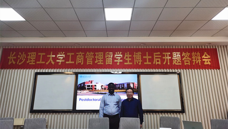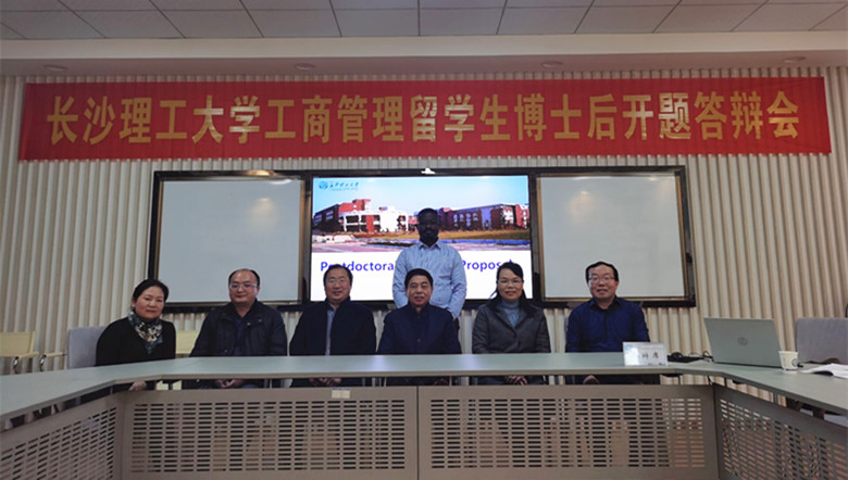12月7日下午,经济与管理学院留学生博士后Bismark ADDAI开题答辩会在金盆岭校区7教206教室举行。Bismark是必赢官网首位留学生博士后,本学期正式进入工商管理博士后科研流动站工作,合作导师为唐文进教授。开题答辩专家组由武汉大学杨艳琳教授、我院王耀中、陈银娥、彭新宇、唐文进教授组成,王耀中教授担任答辩会主席。