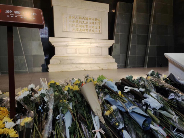 (437必赢会员中心学生们在湖南烈士公园为烈士献上菊花)