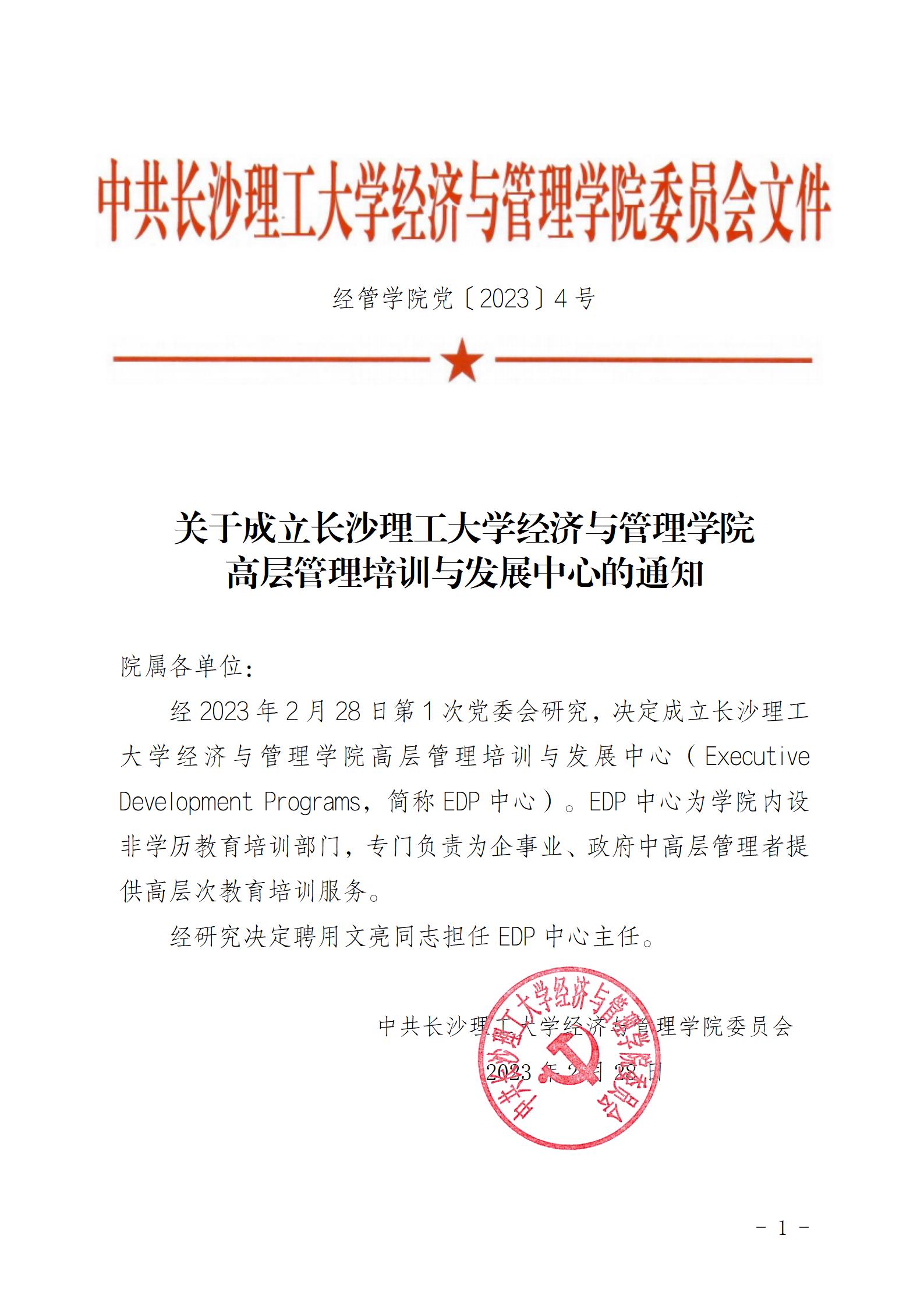 关于成立437必赢会员中心经济与管理学院高层管理培训与发展中心的通知