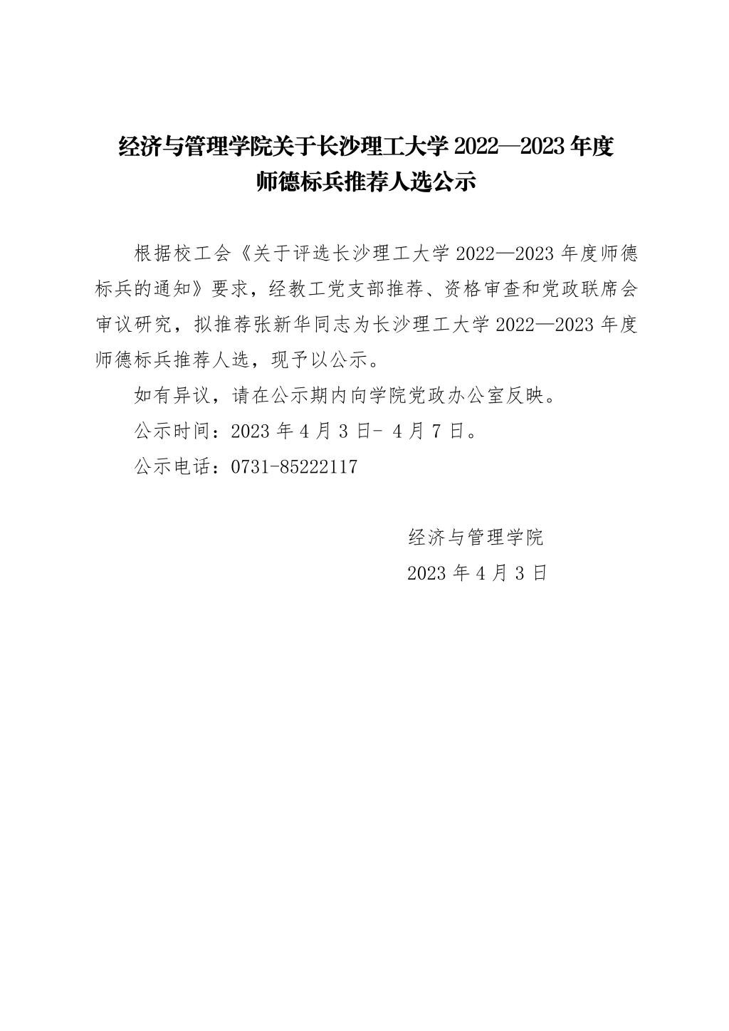 经济与管理学院关于437必赢会员中心2022—2023年度师德标兵推荐人选公示