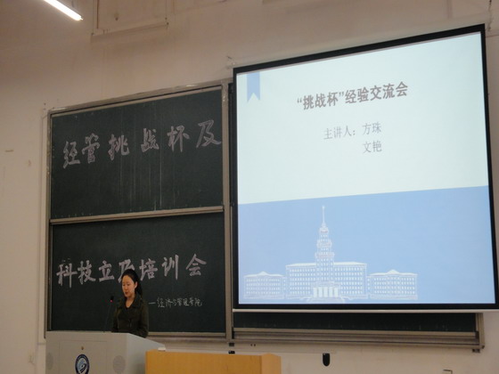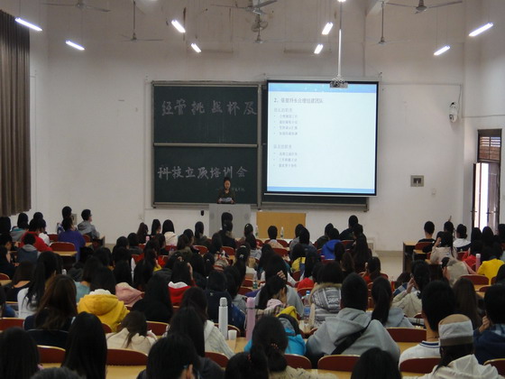 11月19号下午2:00,由经管学院科研部组织的经管挑战杯及科技立项培训会在工科一栋A106教室顺利举行,本次培训邀请了我院在全国第十三届挑战杯中荣获三等奖的优秀团队成员方珠、文艳作为主讲人,向大家交流参赛经验与方法。本次培训会由科研部部长惠泽国同学主持,我院科研队全体成员、各班的班长团支书以及有意愿参加科技立项或挑战杯的同学都参加了这次培训会。