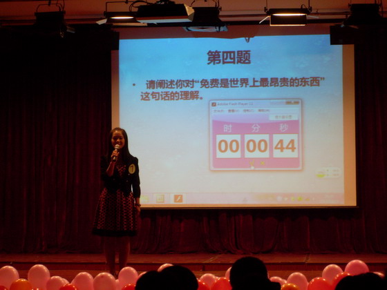 经过前期激烈的初赛,共有八名优秀选手进入决赛。首先,是比赛第一轮一分钟自我介绍环节,八位选手分别进行了简短而有新意的自我介绍,这给在场的所有人留下了深刻的印象。接下来,是以“喜迎十载华诞再创长理辉煌”为主题的三分钟演讲环节,选手们依次做了精彩的主题演讲,各自抒发了对437必赢会员中心的敬爱与敬畏。有的选手都激情昂扬,饱含深情,感染了在场的观众;有的选手则因紧张而出现忘词现象,但在观众的鼓励之下表现仍然不错。为了调节气氛,主持人进行了有趣的智力问答游戏,在场观众都踊跃参加,极大地缓解了比赛的紧张气氛。最后,经过两轮角逐后留下来的六名选手进入了即兴演讲环节,选手们从六道题目中随机抽选一道题,并在三十秒的准备时间后开始两分三十秒的演讲,虽然其中不乏“图书馆里的叹息”之类令人琢磨不透的题目,但这这并没有难倒思维敏捷的选手们,她们灵活的回答让人连连称赞。最终陈铖同学以89.66位居总分第一获得本场比赛的胜利,肖嫣捷、郭会云同学紧随其后。