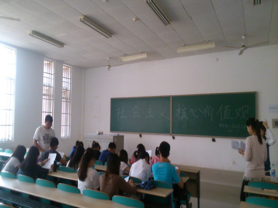 20141028日下午2:30,经管学院第二学生党支部在综合教学楼B104开展了以“社会主义核心价值观”为主题的理论学习活动。支部成员陈统兵、宋卓敏、程沐同学主持,支部所有成员参与学习。