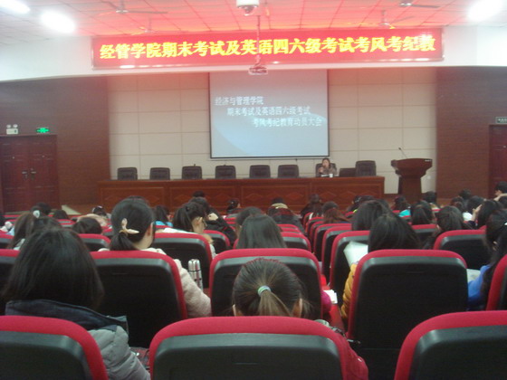 常老师以“诚实守信”这一中华民族的传统美德为切入点,首先让同学们明确“提高自身修养,做一名诚信学生”的认识,强调同学们要切记“分数诚可贵,奖励价更高,若为诚信故,两者皆可抛”这一观念。随着期末考试及英语四六级考试的临近,常老师为同学们分析了考前充分准备的必要性,告诫同学们备考期间务必戒骄戒躁,端正心态正确面对考试。她明确了一名合格大学生应该遵守的文明行为及规范,强调必赢官网处罚考试舞弊现象的纪律,敦促各班学生干部要在学风建设上以身作则,发挥带头作用,会议结束之后应及时召开主题班会,向班级同学传达本次考风考纪动员大会的精神要领,为经管学院严肃考场纪律撑起一道“诚实、文明、自觉、奋进”的亮丽风景线而共同努力。