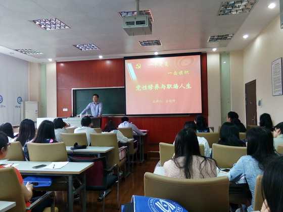 为进一步加强毕业生党员的教育,按照“两学一做”学习教育的有关安排。2016年5月23日上午10:00,在金盆岭7号教学楼217教室,院党委书记庄创奇给2016届研究生毕业班党员上了《党性修养与职场人生》的专题党课。院党委副书记艾楚君、辅导员庄奕参加。