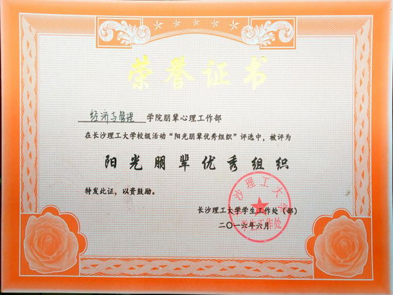 通过学院朋辈心理工作部代表汇报工作,结合部门平时工作表现,由评委进行综合评分。此次评选中,平时工作表现占70%比例。通过综合评比,我院朋辈心理工作部获得总分第一名的好成绩,荣获2015-2016学年阳光朋辈优秀组织奖。全校只有五个学院朋辈心理工作部获此殊荣。能喜获佳绩,这与经管学院朋辈心理工作部扎实、活泼、创新的工作风格是分不开的,也是对部门工作的极大肯定与鼓励。相信我院朋辈心理部在学校指导、学院关心以及师生的共同努力下,定能更好地为学生服务。