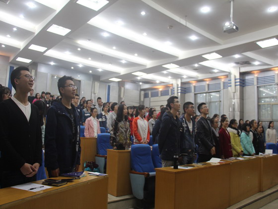 15:30,经管学院第八期青马培养工程在金盆岭校区办公楼一会议室举行了简短的开班仪式,学院分团委书记陈钰汀老师、16级辅导员王宝宝老师、分团委副书记王鹏程出席开班仪式,经管学院金盆岭校区团工委、学生会16分会和16级各班团支书共120多人参加本期青马工程培训。