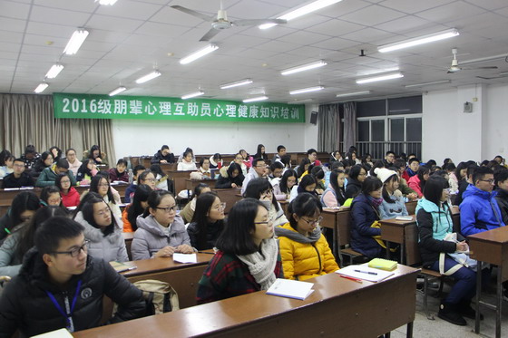 为提升朋辈心理互助员整体心理素质与工作技能,在学校的统一安排下,经管学院于11月22日-24日晚,在金盆岭4教409室与509室组织开展了2016级朋辈心理互助员心理健康知识培训工作。我院共计有210名朋辈心理互助员参与了本次培训。