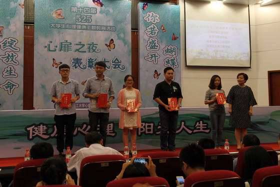 5月25日晚七点,学校第十四届“5.25”心理健康主题教育活动之“心扉之夜”表彰大会在图书馆报告厅举行。副校长谈传生及相关职能部门领导出席会议。