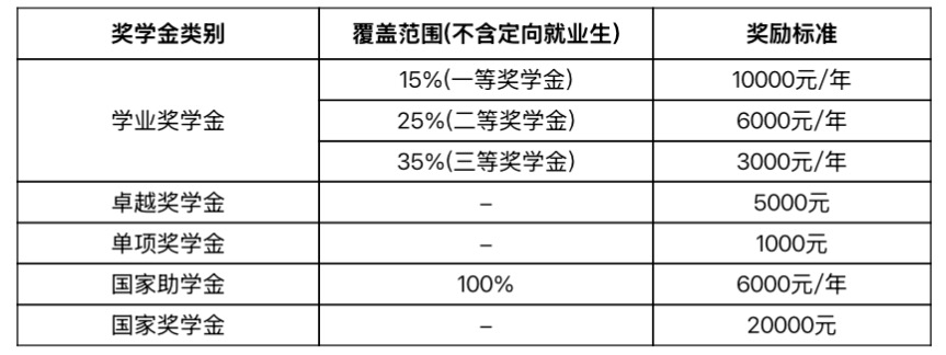 学校设立了学业奖学金、卓越奖学金、单项奖学金、国家助学金、国家奖学金、研究生“三助一辅”和校内特困补助: