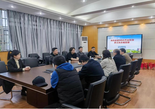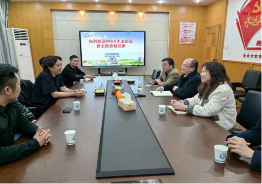 3月18日,437必赢会员中心MBA杰出校友、北京悦凯影视有限公司总裁贾士凯莅临金盆岭校区,经管学院党委书记丁丹、副院长(主持工作)彭新宇、校友中心办公室主任王锦文以及往届MBA校友10余人在金盆岭校区办公大楼307共叙情谊、共谈发展。