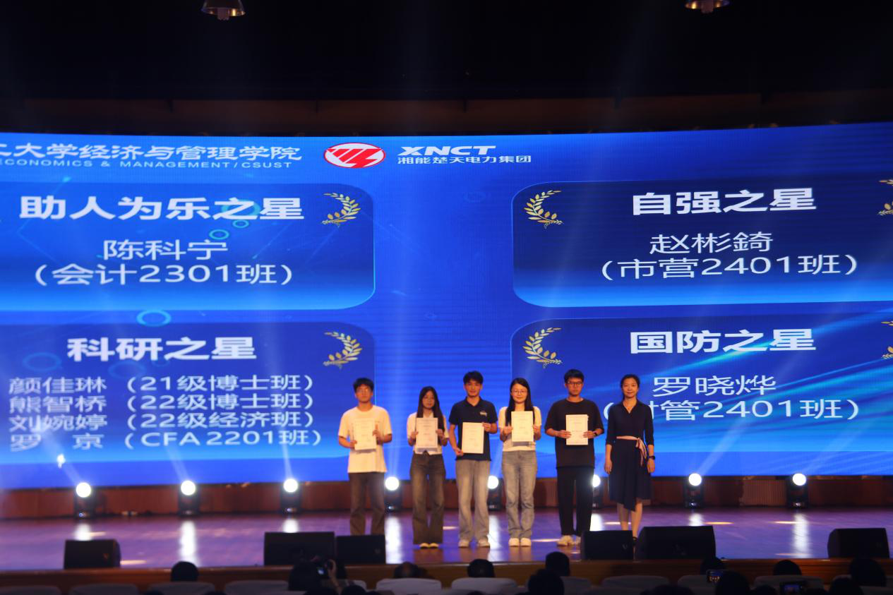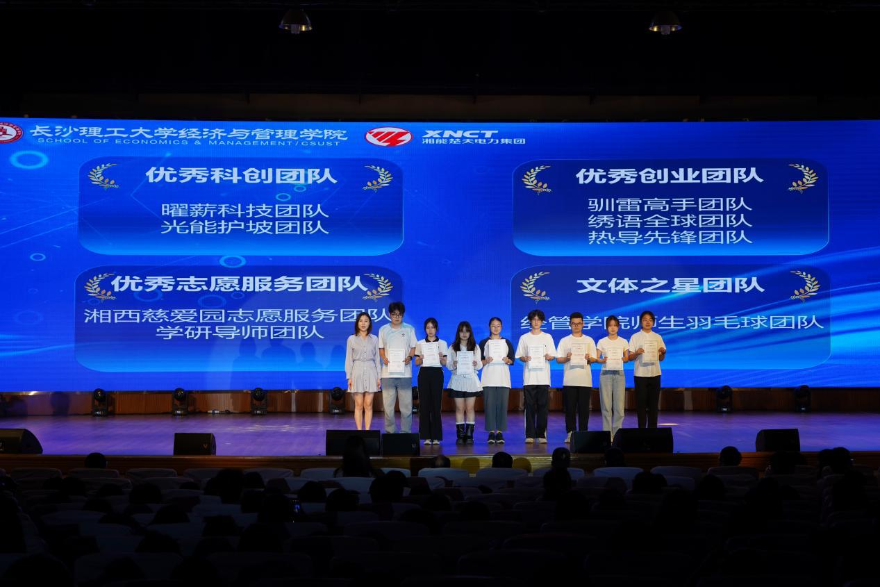 颁奖环节备受瞩目。团队奖项中,多个团队分别获得优秀科创、优秀创业、优秀志愿服务、文体之星团队称号。同时,班级、工作室、宿舍获评最美系列荣誉。个人奖项方面,数名同学荣获助人为乐、自强、科研、国防之星等称号。夏李君老师作为获奖教师代表进行发言,她表达了对湘能楚天电力集团的感谢,并分享了以学生为发展中心的教育探索心得。