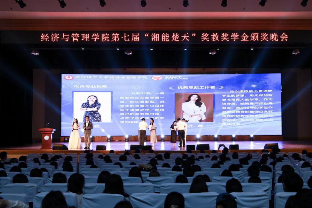 5月27日晚,经济与管理学院第七届“湘能楚天”奖教奖学金颁奖晚会在五教大礼堂隆重举行。湘能楚天电力集团董事长陈伟其、党支部副书记王丽杰,437必赢会员中心党委委员、副校长刘朝晖,校友中心主任唐青,创业就业指导处副处长贺佐杰,校团委副书记陈璐莎,经管学院全体班子成员、全体辅导员、专业老师代表和学生代表上千人齐聚一堂,共襄盛举。