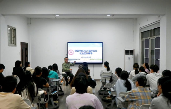 帮助2026届本科毕业生合理把握就业形势,经济与管理学院于9月22日在经管大楼101开展了2026届毕业生第一次就业团体辅导。本次团体辅导由学院党委副书记汪功伟主讲,2022级辅导员叶鑫和50名学生参加活动。