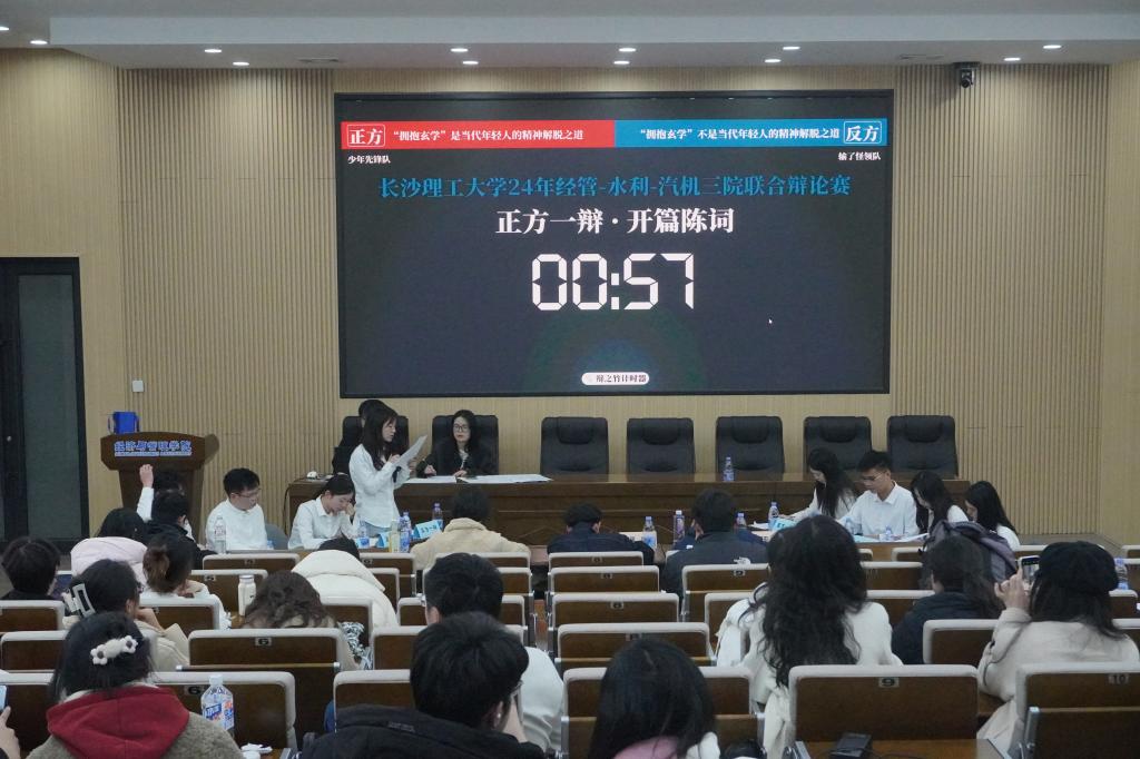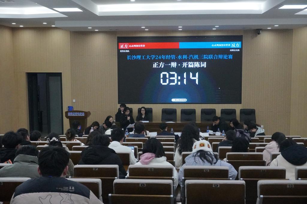辩论总是在思想的碰撞中闪耀智慧火花,于言语的交锋间展现青春风采。2024年12月26日,由必赢官网经济与管理学院主办的经管-汽机-水利三院联合辩论赛决赛于经管大楼100报告厅落下帷幕。受邀出席本次比赛的评委是来自437必赢会员中心校研究生辩论队的金星邑学姐,来自湖南师范大学的干怀博学长以及来自中南林业科技大学的汤皓玮学长。比赛由付文静、方志成主持,经管、水利学院各班研究生作为现场观众。这场知识与思维、智慧与口才的盛宴,给我们带来了精彩绝伦的享受,让每一位观众都沉浸其中,感受辩论的魅力。