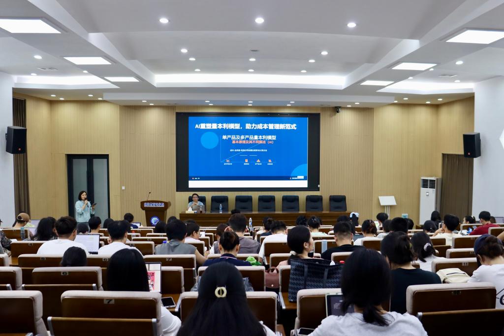 2025年6月26日19:00,现代投资股份有限公司财务管理部副部长、高级管理会计师张汉伦应邀在经管大楼100报告厅做主题为“AI重塑量本利模型,助力成本管理新范式”的讲座。经管学院副院长尹筑嘉教授主持讲座,学院师生120余人到场聆听。