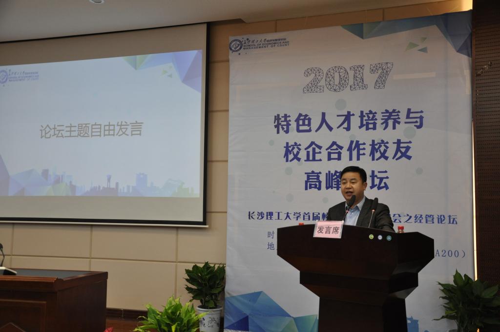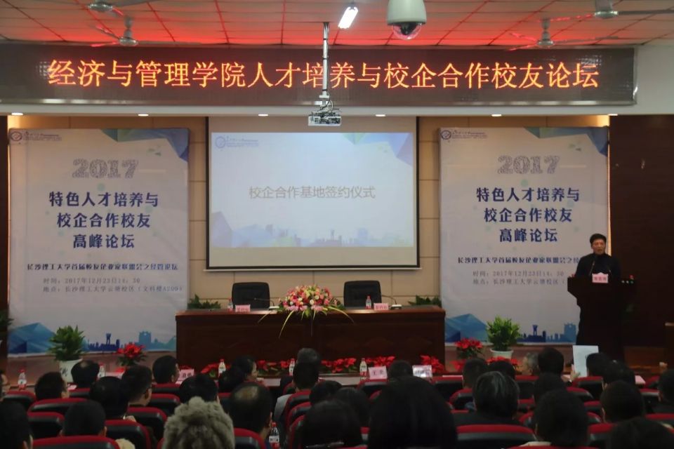 在人才培养与校企合作论坛主题演讲阶段,湖南隆驰信息科技有限公司CEO廖小龙校友、北京艺苑天使投资基金合伙人裴明高校友、湖南紫杉环保科技有限公司法人代表周山红校友、乐城跑天津资产管理有限公司齐晓波校友、湖南高速公路管理局财务处副处长曹翔校友、交通银行星沙支行副行长柳滔校友等围绕人才培养与校企合作分别进行了主题发言。仪式结束后,与会人员进行了合影留念。
