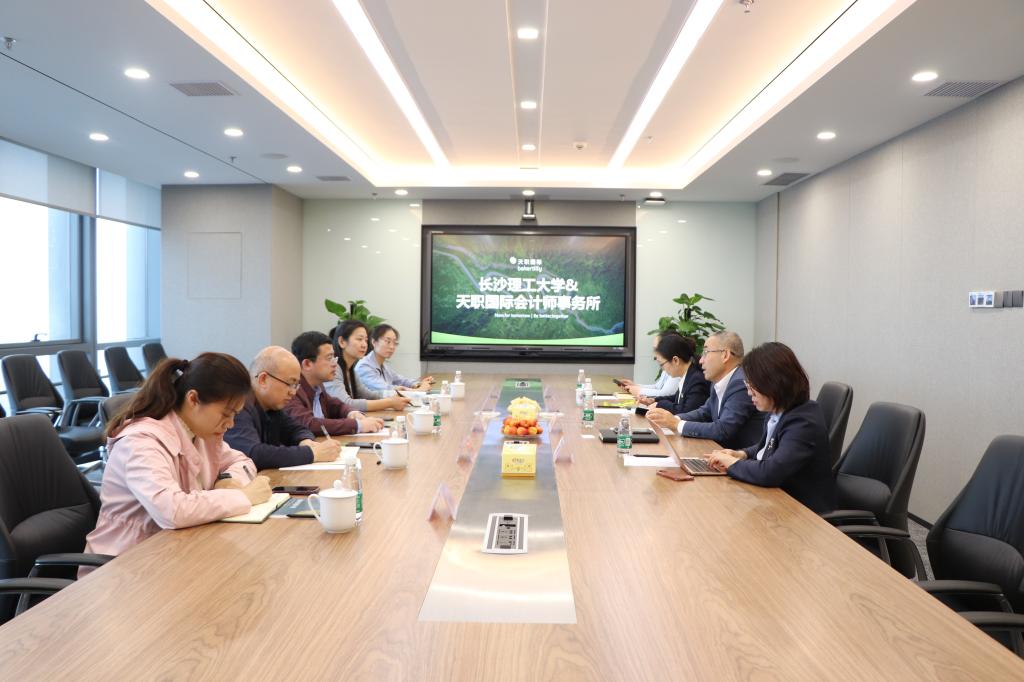 在天职湖南分所会议室,所长刘智清、副所长刘宇科、咨询合伙人肖红英、人力资源主任黄璐热情欢迎学院老师们的到来,详细介绍了公司近年来在业务领域取得了可喜成绩。刘智清认为,长理经管学院的毕业生专业素质强,在天职工作期间成长快,公司把长理经管学院视为校招选才的重要基地。王治介绍了学院财务管理和会计专业的建设情况以及教学改革的最新动态。唐青介绍了毕业生的生源信息概况,感谢公司对学校学院的认可。随后,校企双方就校外导师聘任23届毕业生的就业推荐以及24届毕业生的实习实践等合作事宜进行洽谈,并达成了意向。