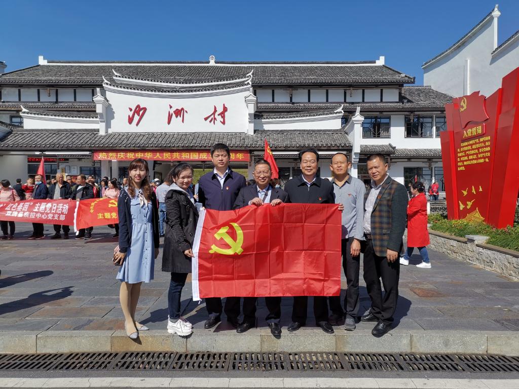 在汝城县文明瑶族乡沙洲村,全体党员重温了入党誓词,参观了“半条被子的温暖”专题陈列馆、故事雕塑,民俗广场、“半条被子”故事发生地旧址等红色景点。在专题陈列馆,讲解员朱晓勇饱含深情地讲述了当地人民革命斗争的历史,详细介绍了汝城早期党组织领导的工农革命运动、红军经过汝城时的故事、“半条被子”故事发生的场景和精神的延续,以及汝城人民在共产党的领导下顽强地坚持抗战、沙洲人民在新时代党中央的领导下传承长征精神、砥砺前行建设幸福沙洲取得日新月异的变化。
