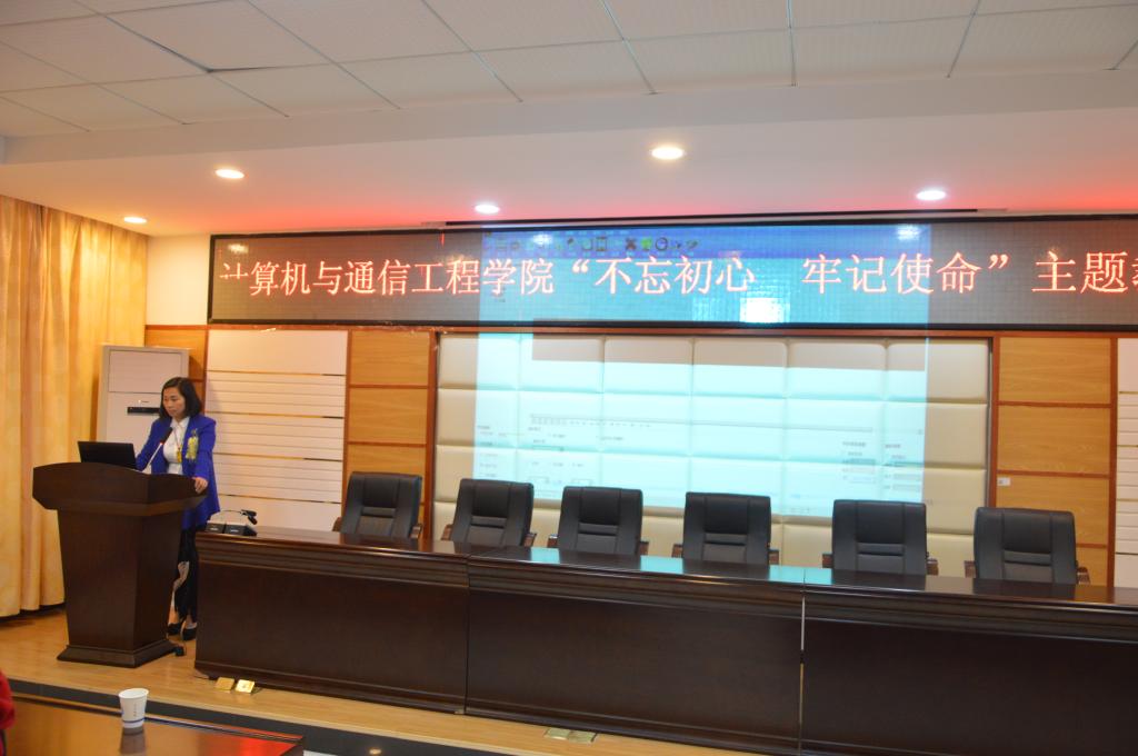 4月24日下午,计通学院在理科楼B311开展了“不忘初心、牢记使命”主题教育。院党委书记方琼作了题为《“不忘初心、牢记使命”——深入学习贯彻党的十九大精神》的专题党课,学院全体教职工和党员参加了本次主题教育活动。