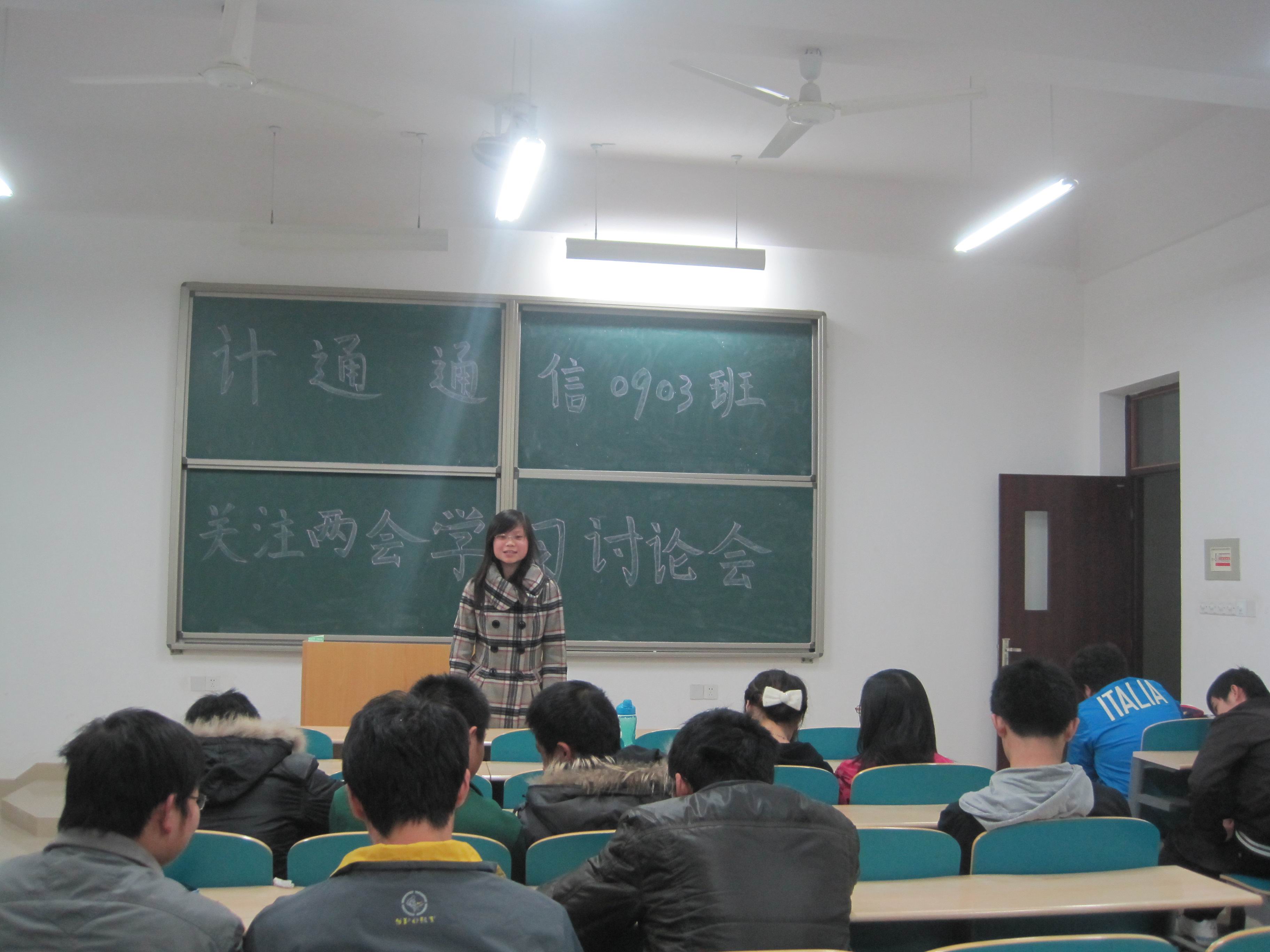 近日两会十一届全国人大四次会议及全国政协十一届四次会议正如火如荼的进行。计通学院分团委根据学校团委要求,广泛发动宣传,要求学院全体学生紧跟时事动态、关注两会。学院各班团支部积极响应,运用了博客、微博、主题班会等形式,广泛参与到两会的热点问题的讨论与学习,并在学院各班树立了正确的舆论导向,体现了计通学子热爱祖国、心系国家的良好精神风貌。