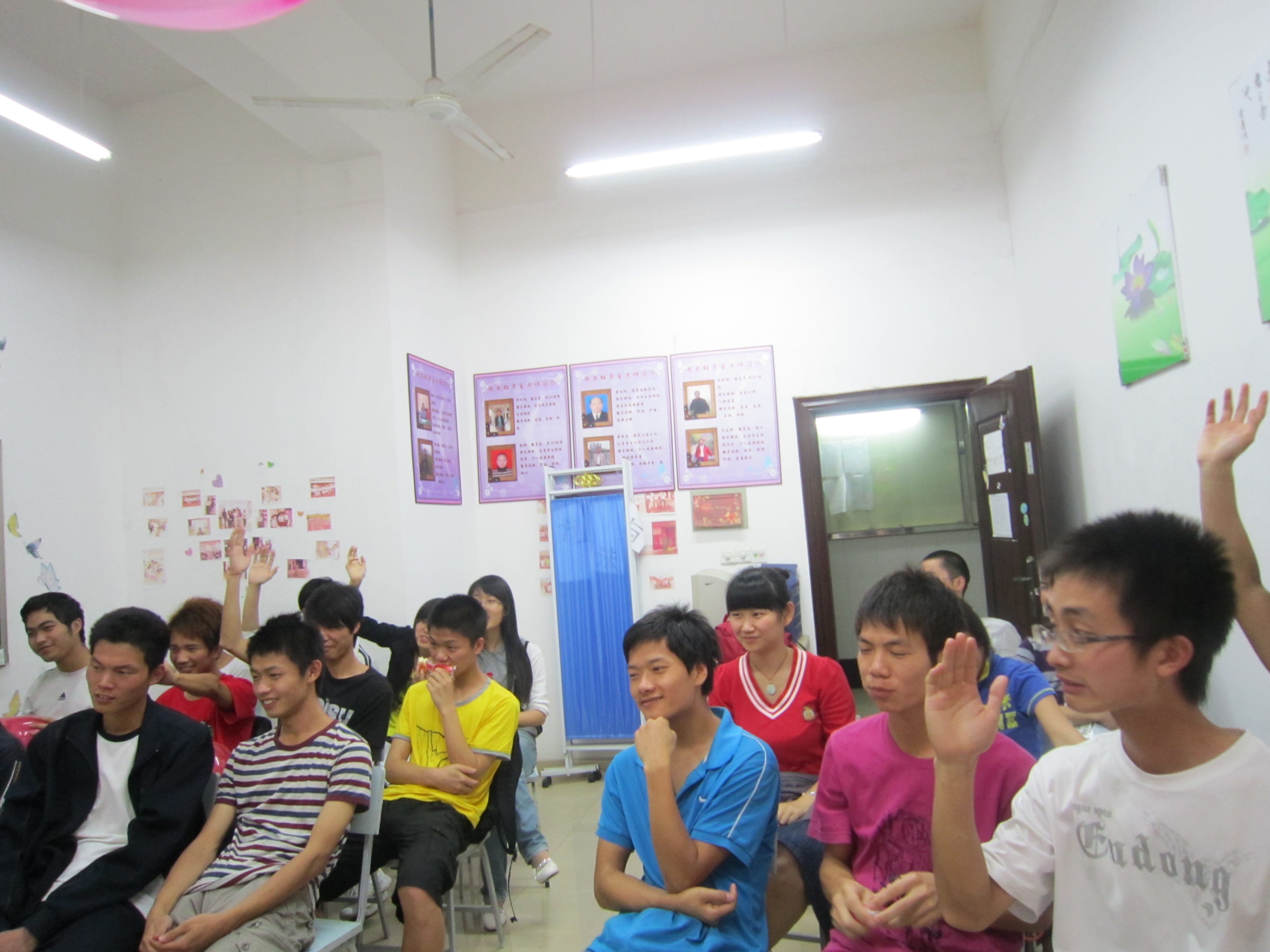晚上七点整,心理沙龙活动准时拉开序幕。在舒缓的背景音乐下,伍接朝老师向大家介绍了沙龙活动的流程与注意事项,并对大家准时参加心理沙龙活动表示欢迎和感谢。接着,伍老师与唐月来同学一起与大家共同探讨了压力的产生原因及有效的应对方式,并以自己的经历与大家共同分享面对压力的方法,现场氛围活跃不已,笑声不断。在压力释放环节,伍老师把同学们大家分成四个小组,和同学们一起进行了撕报纸和踩气球的压力宣泄游戏,报纸撕得又快又碎,同学们的笑声更是欢快,最后大家还将撕碎的报纸抛向空中,气球也在连续不断的声响中碎了一地,大家玩得既开心又痛快!最后,伍接朝老师给每个参与沙龙活动的同学发放了事先准备好的蛋糕,告诉大家压力就是生活的甜点,关键在于大家面对压力的态度。