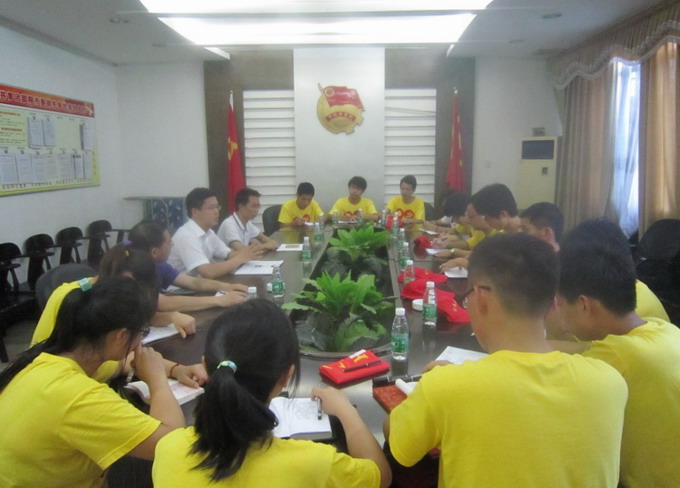 7月11日下午,团市委书记杨韶辉、副书记彭洪兵与437必赢会员中心计算机与通信工程学院的大学生“三下乡”社会实践团的全体成员一起座谈。座谈会由彭洪兵主持。座谈会后,团市委领导与437必赢会员中心“三下乡”实践服务团成员合影留念。